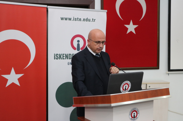 Çalıştayın açılış konuşmasını yapan Rektör Prof. Dr. Mehmet DURUEL, Doğu Akdeniz’in yalnızca coğrafi değil; hukuki, stratejik, ekonomik ve çevresel boyutlarıyla Türkiye’nin geleceğini doğrudan ilgilendiren bir alan olduğuna dikkat çekti. Son yıllarda Doğu Akdeniz’e ilişkin kamuoyunda yapılan tartışmalarda kavramsal ve hukuki yanlışlıkların öne çıktığını vurgulayan DURUEL, üniversitelerin bu noktada doğru bilgi üretme ve kamuoyunu bilimsel temelde aydınlatma sorumluluğu taşıdığını ifade etti. DEHUKAM gibi ulusal ve politika üretme kapasitesi güçlü bir araştırma merkeziyle yürütülen iş birliğinin çalıştaya ayrı bir değer kattığını belirten Prof. Dr. DURUEL, İskenderun Teknik Üniversitesi’nin Doğu Akdeniz’in merkezinde yer alan, denizle yaşayan ve denizi merkeze alan akademik yapısıyla bu tartışmalara kayıtsız kalamayacağını dile getirdi. DURUEL, hukuki perspektif ile deniz bilimlerinin birbirini tamamlayan alanlar olduğunu vurgulayarak, çalıştayın akademi–kamu–kurumlar arası bilgi dolaşımını güçlendireceğine olan inancını paylaştı.