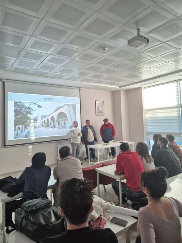 Dersin yürütücüleri Doç. Dr. Mert Nezih Rifaioğlu ve Dr. Öğr. Üyesi Ebru Harman Aslan ile öğrencilerin katılımıyla gerçekleşen sunumda, 6 Şubat 2023 depremlerinde yıkılan Habib-i Neccar Camii’nin rekonstrüksiyon süreci, proje sorumlusu mimar tarafından ayrıntılı olarak aktarılmıştır. Sunumda, yapının hasar tespit çalışmaları, restitüsyon ve rekonstrüksiyon kararlarının geliştirilmesi ile uygulama aşamalarına ilişkin teknik ve bilimsel değerlendirmeler paylaşılmıştır.