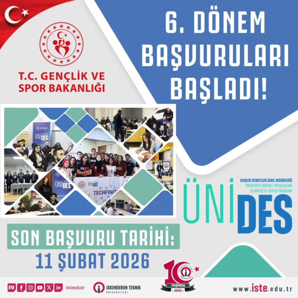 Gençlerin fikirlerinin, üretimlerinin ve projelerinin desteklenmeye devam ettiği ÜNİDES programına tüm üniversite toplulukları davetlidir.