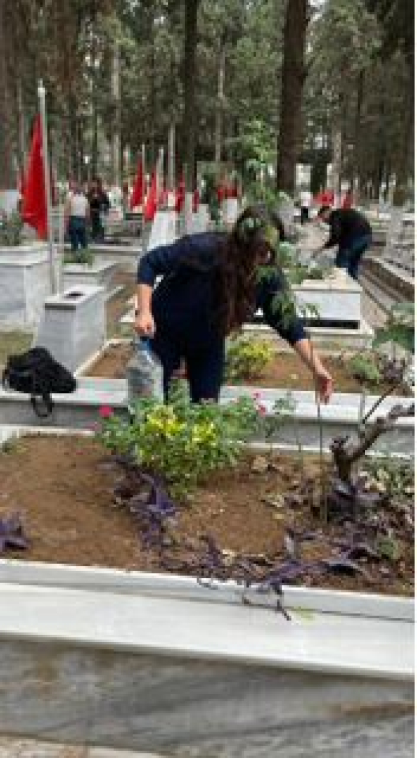 Öğrencilerimiz Gönüllülük Çalışmaları Dersi Projeleri kapsamında, Nardüzü Mezarlığı ve Asri Mezarlık içerisinde bulunan Kimsesizler Mezarlıklarına ziyaret gerçekletirmiştir. Ziyaretleri sırasında mezarlıklarda temizlik, çiçek dikimi ve sulama etkinlikleri gerçekleştirerek, kimsesizlerin kimsesi olmuşlardır.