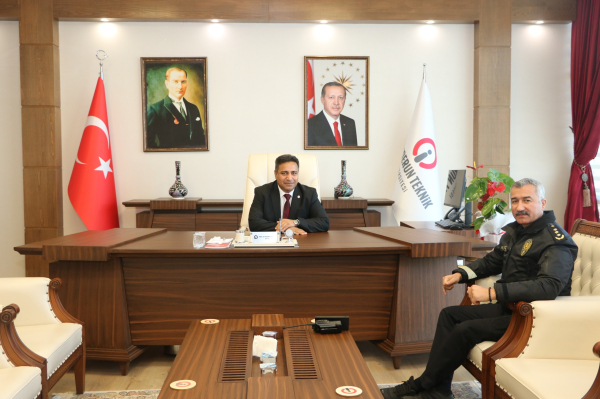 İskenderun Teknik Üniversitesi (İSTE) Rektörü Prof. Dr. Mehmet DURUEL, Dörtyol İlçe Emniyet Müdürü Dinsever Dinçer KALKAN’ı Rektörlük Makamında misafir etti. 8 Ocak Çarşamba Günü gerçekleşen ziyarette; Emniyet Müdürü KALKAN, Rektör Prof. Dr. DURUEL’e yeni görevi için hayırlı olsun dileklerini iletti.