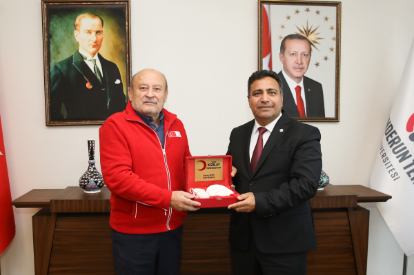 İskenderun Teknik Üniversitesi (İSTE) Rektörü Prof. Dr. Mehmet DURUEL, Türk Kızılay İskenderun Şube Başkanı Recep SİVRİ ve beraberindeki Yönetim Kurulu Üyelerini Rektörlük Makamında misafir etti.