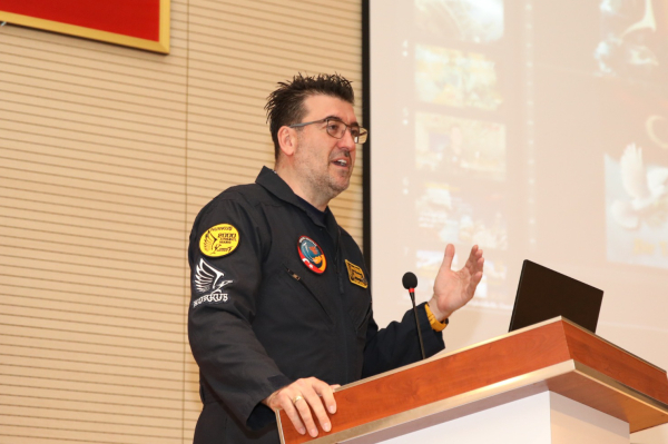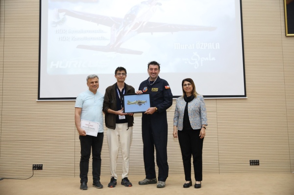 Öğrencilerle mesleki deneyimlerini paylaşan ÖZPALA, havacılık sektörünün dinamiklerine ve test pilotluğunun kritik rolüne dikkat çekti. Konuşması sırasında Hürkuş projesindeki uçuş deneyimlerini aktaran ÖZPALA, gerçekleştirdiği test uçuşlarını görseller ve videolar eşliğinde sunarak katılımcılara unutulmaz anlar yaşattı. ÖZPALA’nın sunumu, gençlerin havacılık alanındaki heyecanını ve motivasyonunu daha da artırdı. Programın son bölümünde öğrenciler, ÖZPALA’ya yönelttikleri sorularla kariyer planlamaları ve havacılık sektörü hakkında değerli bilgiler edinme fırsatı buldu. Program, değerli bilgi ve deneyimlerini katılımcılarla paylaşarak etkinliğe katkıda bulunan Hürkuş Test Pilotu Murat ÖZPALA’ya teşekkür belgesi takdim edilmesinin ardından günün anısına çekilen toplu fotoğraf ile sona erdi.