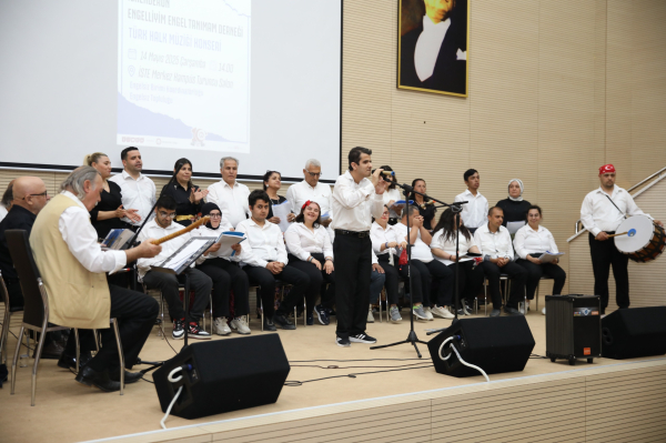 Yoğun katılımın olduğu etkinlik, Dernek Başkanı Kamil GÖÇMEN’in samimi ve anlam yüklü açılış konuşmasıyla başladı. Ardından sahneye çıkan Engelsiz Türk Halk Müziği Korosu; “Zeytin Yaprağı Yeşil”, “Çay Elinden Öteye”, “Telgrafın Tellerine”, “Su Getir Güldür Güldür”, “Başındaki Yazmayı”, “Çemberimde Gül Oya”, “Mardinli Güzel Yârim”, “Kara Üzüm Habbesi” gibi sevilen türküleri seslendirdi. “Kınayı Getir Aney” ve “Yüksek Yüksek Tepelere” parçaları sırasında sahnede kına yakılması, dinleyicilere hem duygu dolu hem de unutulmaz anlar yaşatırken, coşkulu izleyici kitlesi de türkülere hep bir ağızdan eşlik etti. Konserin sonunda, koro adına Dernek Başkanı Kamil GÖÇMEN’e Rektör Yardımcısı Prof. Dr. Nazif ÇALIŞ ve Genel Sekreter Yılmaz BALAMAN tarafından çiçek takdim edildi ve sonrasında bu anlamlı buluşma, hatıra fotoğraf çekimiyle ölümsüzleştirildi. Etkinlik kapsamında ayrıca İskenderun Gençlik Merkezi tarafından kurulan “Empati Parkuru”nda üniversite dekanları, akademisyenler ve öğrenciler engelli bireylerin günlük yaşamda karşılaştıkları zorlukları deneyimleme fırsatı buldu. Bu deneyim, katılımcılara farkındalık kazandırırken etkinliğin mesajını da pekiştirdi: “Engel, yüreklerde değilse hiçbir yerde değildir.” İskenderun Teknik Üniversitesi’nde gerçekleşen bu özel etkinlik, müziğin birleştirici gücüyle toplumsal farkındalığı artırırken, katılımcılara duygu dolu bir gün yaşattı.