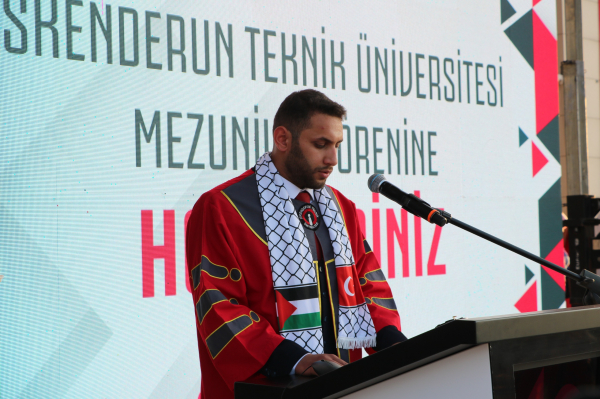 “Bugün sadece bir eğitim süreci değil, büyük bir sorumluluğu da devralıyorsunuz. Sizler, toplumumuzun ve insanlığın umudu olacaksınız. İçinde bulunduğumuz çağda bilgili olmak yetmez; erdemli bireyler olmanızı, bir elinizle teknolojiyi, diğer elinizle kalbinizi tutmanızı bekliyoruz. Filistin halkı insanlığın vicdanını temsil ederken, bizler de bu çağın zorluklarına karşı adalet, vicdan ve cesaretle durmalıyız. Mezuniyet sizin için bir son değil, hayat boyu sürecek bir yolculuğun ilk adımıdır.”