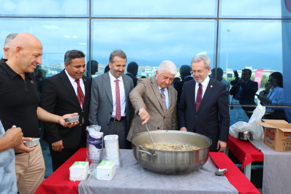 Rektör Prof. Dr. Mehmet DURUEL’in ev sahipliğinde düzenlenen etkinliğe, Ankara Üniversitesi Rektörü Prof. Dr. Necdet ÜNÜVAR, 26. Dönem Hatay Milletvekilleri Serkan TOPAL ve Gazi Hacı Bayram TÜRKOĞLU, Hatay Baro Başkan Yardımcısı Kemal GÜNGÖR, Hatay Mustafa Kemal Üniversitesi Rektör Yardımcıları Prof. Dr. Erhan YENGİL ve Prof. Dr. Mehmet TURAN, İskenderun Belediye Başkan Yardımcısı Cihan AKYÜREKOĞLU, Arsuz Belediye Başkan Vekili Sedat BEKTAŞLI, Üniversite Rektör Yardımcıları, dekanlar, akademik ve idari personel ile çok sayıda basın mensubu katıldı. Yoğun ilgi gören etkinlikte, protokol üyeleri kazanların başına geçerek aşureleri kendi elleriyle davetlilere ikram etti. Birlik, beraberlik ve kardeşlik duygularının pekiştirildiği etkinlik, katılımcılar tarafından takdirle karşılandı.