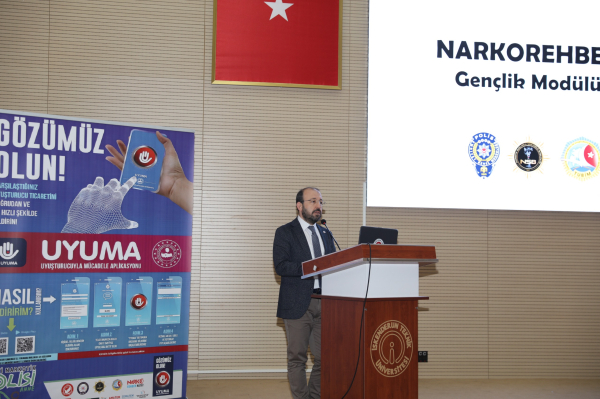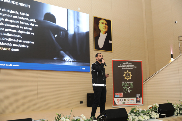 Açılış konuşmasının ardından, madde bağımlılığı konusunda toplumsal farkındalık oluşturmak amacıyla ödül almış “İki Ekmek” adlı kısa film gösterimi gerçekleştirildi. Seminer kapsamında Hatay İl Emniyet Müdürlüğü Narkotik Suçlarla Mücadele Şube Müdürlüğü ekipleri tarafından yapılan sunumda; “Uyuşturucu madde nedir?”, “Madde bağımlılığı nedir?”, “Madde bağımlılığıyla nasıl mücadele edilir?”, “Uyuşturucu maddeye başlama nedenleri”, “Bağımlılık döngüsü”, “Madde bağımlılığına giden yol” ve “Madde kullanım belirtileri” başlıkları ele alındı. Sunumda ayrıca fiziksel ve sosyal belirtiler, uyuşturucu kullanılan mekânlar ile uyuşturucu madde ticareti ve kullanımının yasal boyutu hakkında kapsamlı bilgiler paylaşıldı. Katılımcılara, uyuşturucuyla mücadelede etkin bir ihbar ve bildirim sistemi olan UYUMA uygulaması tanıtılarak uygulamanın kullanım şekli hakkında bilgilendirme yapıldı. Program kapsamında narkotik dedektör köpeği “Arven” katılımcılara tanıtıldı. Arven ile gerçekleştirilen uygulamalı eğitim, öğrenciler tarafından ilgiyle takip edildi ve güvenlik güçlerinin uyuşturucuyla mücadeledeki teknik kapasitesine dair önemli bir farkındalık oluşturdu.