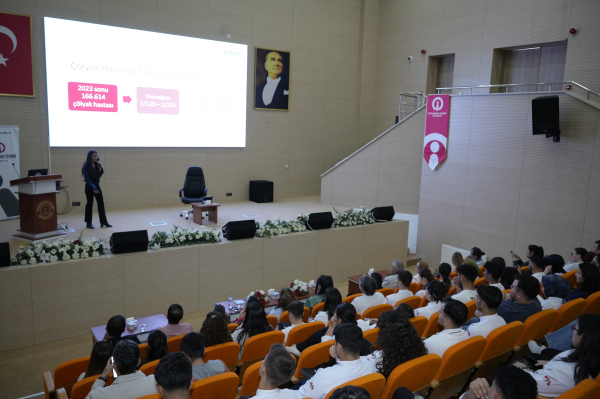 Konuşmasına Turizm Fakültesi yönetimine davetleri ve sağladıkları imkân için teşekkür ederek başlayan Müberra UZUN, Schar firması tarafından hayata geçirilen “Glütensiz Yol Arkadaşım” projesi hakkında katılımcılara bilgi verdi. UZUN, söz konusu projenin çölyak hastalığına yönelik farkındalığı artırmayı amaçladığını belirterek, çölyak hastalarının hem hastalıkları konusunda bilinçlenmesine katkı sağlamak hem de glütensiz ürünlere erişim konusunda çeşitli destek ve yardımlar sunmak amacıyla bazı illerde başlatılan projenin Türkiye genelinde yaygınlaştırılmasının hedeflendiğini ifade etti. Söyleşide ayrıca glütenin ne olduğu, glütensiz beslenmenin temel prensipleri ve çölyak hastalığı ile glüten arasındaki ilişki hakkında kapsamlı bilgiler paylaşıldı. Glütensiz diyetin günlük yaşamda nasıl uygulanabileceğine dair örneklerin de ele alındığı program, öğrencilerin ve katılımcıların yönelttiği soruların cevaplanmasıyla interaktif bir şekilde devam etti.