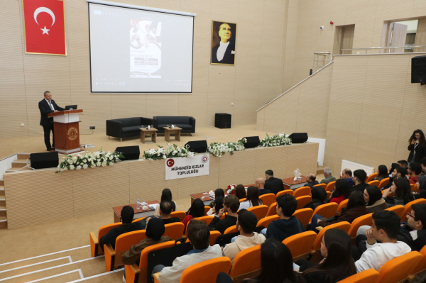 “CV Hazırlama, İşe Alım Süreçleri ve Mülakatlarda Dikkat Edilmesi Gerekenler” başlıklı sunumunda öğrencilerle kapsamlı bilgiler paylaştı. DOĞAN; etkili CV yazımı, ilk izlenim, mülakat teknikleri ve işe alım süreçlerinin işleyişi üzerine uygulamalı açıklamalar yaparak öğrencilere önemli tavsiyelerde bulundu. Programın son sektör konuşmacısı, Tosyalı Holding İnsan Kaynakları Direktörü Serkan AYVATAŞ oldu. AYVATAŞ, “Kurum Kültürü, Liderlik Becerileri ve Profesyonel Gelişim” temalı sunumunda; sürdürülebilir başarı için liderlik vizyonunun önemine, kurumsal değerlerin çalışan gelişimiyle ilişkisine ve genç mühendislerin kariyer planlamasında dikkat etmesi gereken noktalara değindi.