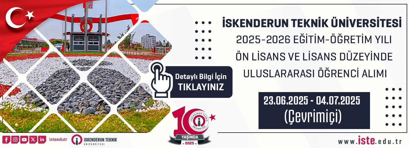 İSKENDERUN TEKNİK ÜNİVERSİTESİ 2025-2026 EĞİTİM-ÖĞRETİM YILI ÖN LİSANS VE LİSANS DÜZEYİNDE ULUSLARARASI ÖĞRENCİ ALIM İLANI