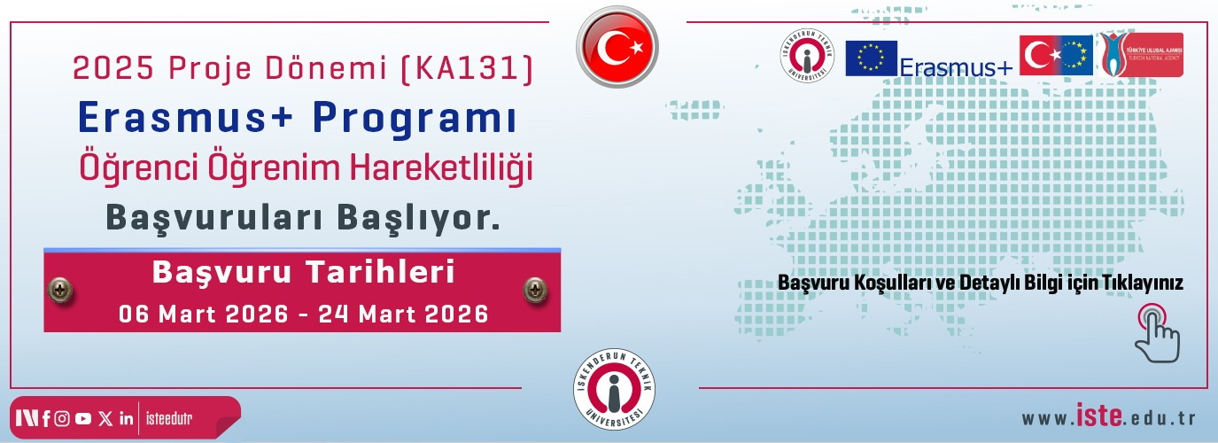ERASMUS+ PROGRAMI 2025 DÖNEMİ KA131 PROJESİ ÖĞRENCİ STAJ HAREKETLİLİĞİ İLANI