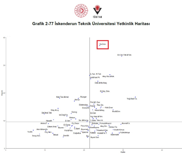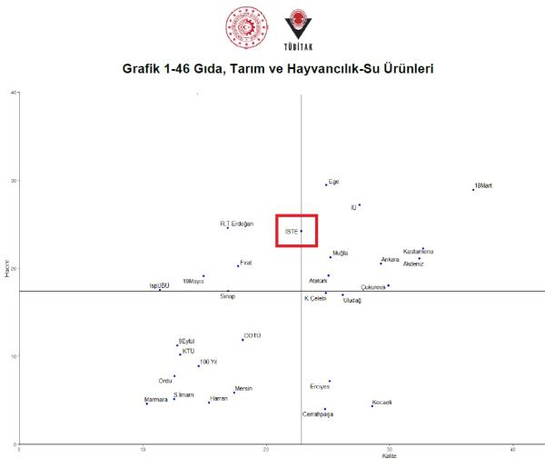 TÜBİTAK tarafından 2023 yılında yayınlanan “Üniversitelerin Alan Bazlı Yetkinlik Analizi” Raporu’na göre, İSTE Deniz Bilimleri ve Teknolojisi Fakültesi hacim kriterleri bakımından Su Ürünleri alanında Türkiye’deki en yetkin fakülteler sıralamasında ilk 5’te yer aldı.