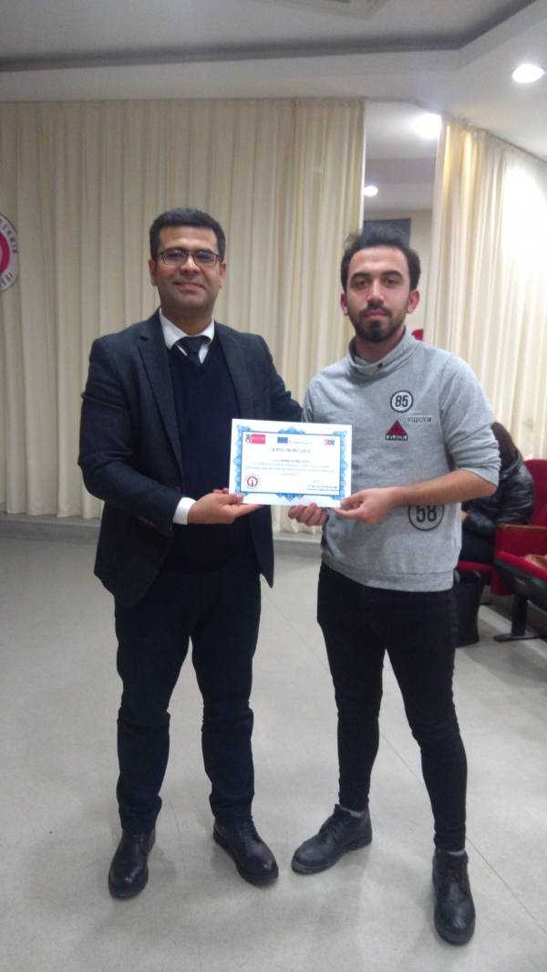 Eğitim sonunda, Koordinatörlüğümüz tarafından tarafından katılımcılara katılım belgeleri takdim edildi.