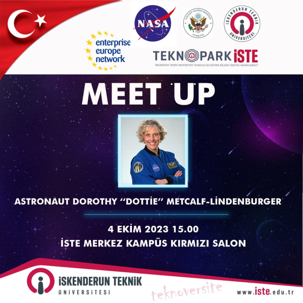Uluslararası bir üniversite olma yolunda emin adımlarla ilerleyen İskenderun Teknik Üniversitesi (İSTE) bu kez emekli NASA astronotu Dorothy Metcalf-Lindenburger’ı misafir edecek. Emekli NASA Astronotu Dorothy -Dottie- Metcalf-Lindenburger, 4 Ekim Çarşamba günü 15.00’te, İSTE Merkez Kampüs’te Kırmızı Salon’da İSTE öğrencileri, personelleri ve davetli lise öğrencileri ile bir araya gelecek. NASA, ABD Adana Konsolosluğu, İSTE ve İSTE Teknopark iş birliğiyle gerçekleşecek Meet Up etkinliğinde Astronot Dottie, Uluslararası Uzay İstasyonu’nda yaşamanın nasıl bir şey olduğundan kara delikler ve evrenimizin harikalarına kadar merak edilen soruları yanıtlayacak.