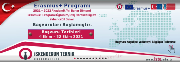2021 – 2022 Akademik Yılı Bahar Dönemine ait Erasmus Başvurularına ait detaylar Dış İlişkiler Genel Koordinatörlüğü'nin websitesinde paylaşılmıştır.