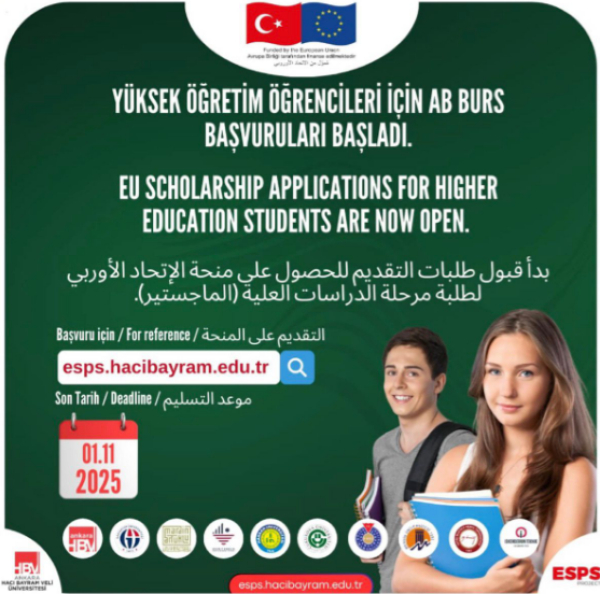 بيرم ولي يبدأ استقبال طلبات التقديم للحصول على المنحة الدراسية المقدمة من الإتحاد الأوربي للطلبة السوريين على الأراضي التركية.