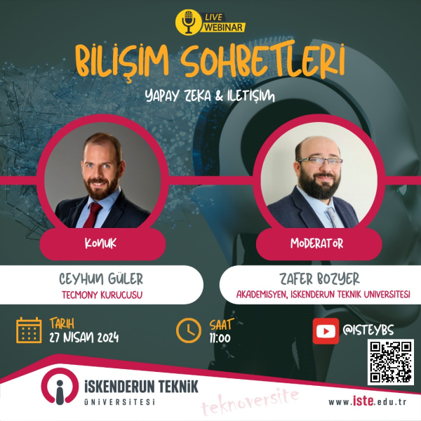 İskenderun Teknik Üniversitesi, Yönetim Bilişim Sistemleri Bölümü tarafından düzenlenen Bilişim Sohbetleri kapsamında önümüzdeki ay birbirinden değerli konukları ağırlayacağız. Sohbetlere ortak olmak isteyen herkesi bekliyoruz. Etkinlik Takibi: tıklayınız