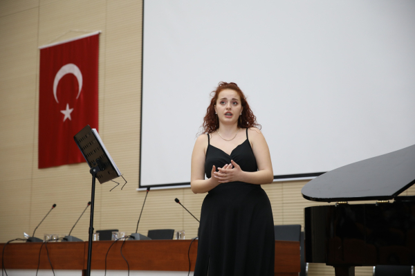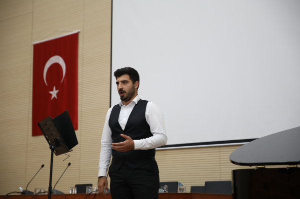 The program continued with a Vocal Concert performed by the members of staff at Mustafa Yazıcı State Conservatory (MYDK). Lecturer Umut Gürbüz Seydialioğlu led the concert, while Lecturer Rasim Paşaoğlu accompanied the sopranos and basses with the piano. MYDK students Seda Yüksel Memiş, Mehmet Mert Akgemci, Ebru Sinem Özyıldız, Semanur Çidam, and Muhammet Büyüktaş performed beautiful pieces of music during the concert.