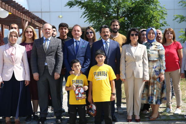 After inspecting the exhibition, which featured 30 paintings created by 20 students using oil painting technique, District Governor Murat Sefa Demiryürek, Rector Depci, and Youth and Sports Director Gündel congratulated the students and wished them success in their work. The opening of the exhibition, accompanied by music performance by students, concluded with a cocktail reception and a group photo session.