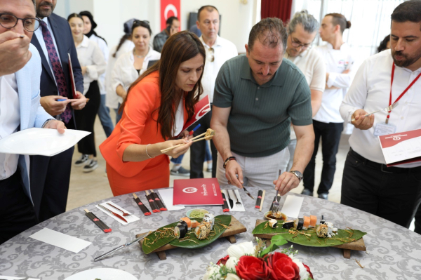 In the competition, where each team consisted of two members in the seafood and tart categories and a total of 19 teams competed, the jury included ISTE Rector, Prof. Dr. Tolga Depci and his wife Assoc. Prof. Dr. Aytemis Depci, Iskenderun Mayor Mehmet Dönmez, Dean of the Faculty of Tourism Yakup Kutlu, Head of the ISTE Department of Gastronomy and Culinary Arts Assoc. Prof. Dr. Sait Doğan, and President of the Iskenderun Gastronomy Association Gülşen Sökmen. After the teams presented their beautifully prepared dishes, the jury members proceeded to taste the plates prepared by the young chefs. Moving from table to table where dishes were presented, the jury members first tasted the plates with seafood and then the tart plates.