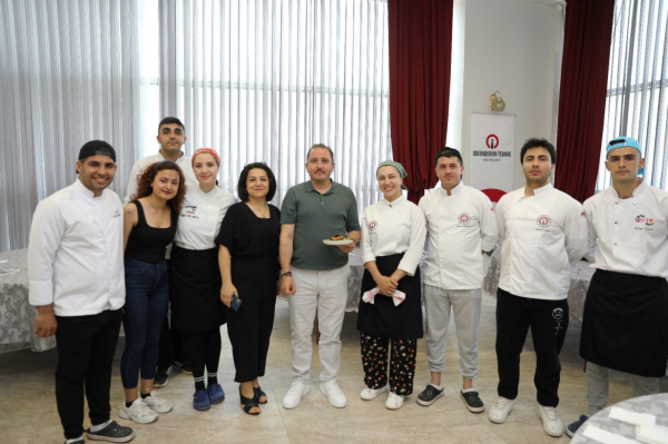 In the fiercely contested competition, Ömer Balta and Beyzanur Yaşar won first place in the seafood category with their Salmon Cage dish, while Hatice Çakır and Ayyüce Cücemen took second place with their Salmon Fillet dish accompanied by Spinach Pasta, and Yunus Sarıkaya and Umut Arviş secured third place with their Seafood Kokoreç dish. In the tart category, the winners were as follows: Furkan Can Üzüm and Beyza Betül Güneş with their Forest Fruit Tart in first place, Emire Karagülle and Selin Serap Tatlı with their Tart on Mango Bed in second place, and Hasret Ayriç and Helin Ötmi with their Mango Pineapple Tart in third place. After the competition, the award-winning students were presented with their prizes, and the event concluded with a group photo session.