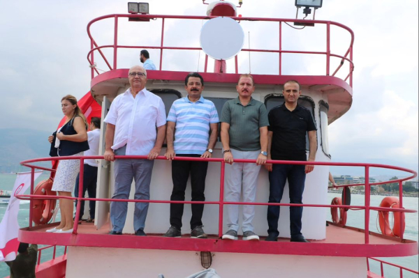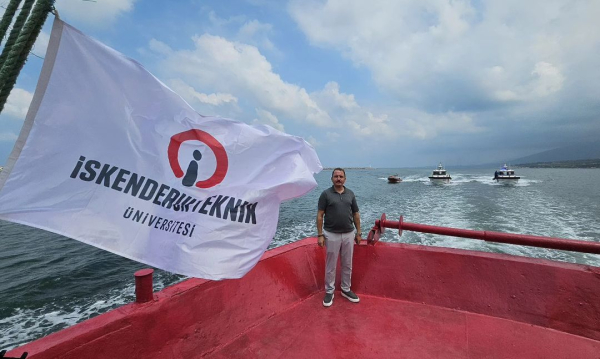 As part of the July 15 Democracy and National Unity Day commemoration activities, Iskenderun Technical University (ISTE) held a flag-raising ceremony at sea in Iskenderun Bay. The event, held on Sunday, July 14, was attended by ISTE Rector Prof. Dr. Tolga Depci, Iskenderun District Governor Murat Sefa Demiryürek, Iskenderun District Police Chief Nevzat Güneş, Chairman of IMEAK Iskenderun Branch Kemal Kutlu, and Dean of ISTE Faculty of Marine Sciences and Technology Prof. Dr. Cemal Turan. The participants embarked on the R/V ISTE 1, led by Rector Prof. Dr. Tolga Depci, and were accompanied by Coast Guard and Marine Police units. During the ceremony, a Turkish flag was unfurled on the ship, underscoring the inviolability of our seas, while honouring the martyrs who sacrificed their lives for the Turkish nation and reaffirming the spirit of democracy and national unity.