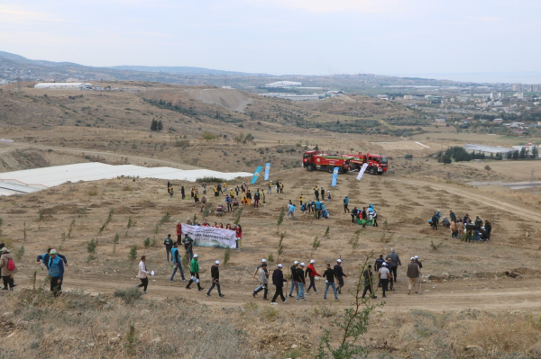 In his speech, Hatay Regional Forest Director Assistant Veysel Ayyıldız said, "As is well known, since November 2019, under the auspices of our President Recep Tayyip Erdoğan, we have been celebrating November 11th as National Afforestation Day every year. This year's event slogan, 'A Breath for Humanity,' was chosen to draw attention to the ongoing humanitarian tragedy caused by Israel’s actions against the Palestinian people."