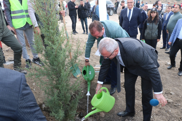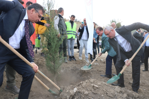 Following the protocol speeches, plaques were placed on the trees, and attendees proceeded to the planting area. The first saplings were planted in a grove named after the late İskenderun District Governor and current Kırşehir Governor, Murat Sefa Demiryürek. İskenderun District Governor Muhammet Önder, Arsuz District Governor Hacı Hasan Gökpınar, İskenderun Mayor Mehmet Dönmez, and İSTE Rector Prof. Dr. Tolga Depci conducted the first tree planting. The saplings were watered with the hope that they would grow into trees that will breathe life into the future.