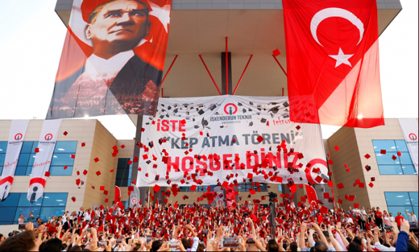 İskenderun Teknik Üniversitesi (İSTE) Merkez Kampüste Yeni Kütüphane önünde oluşturulan büyük meydanda düzenlenen Toplu Kep Atma Töreni’nde, gökyüzü mezun adaylarının kepleri ile renklendi. Ardından, Kızılay işbirliği ile ikram edilen İftar Yemeği’ne 4000 kişi katıldı.