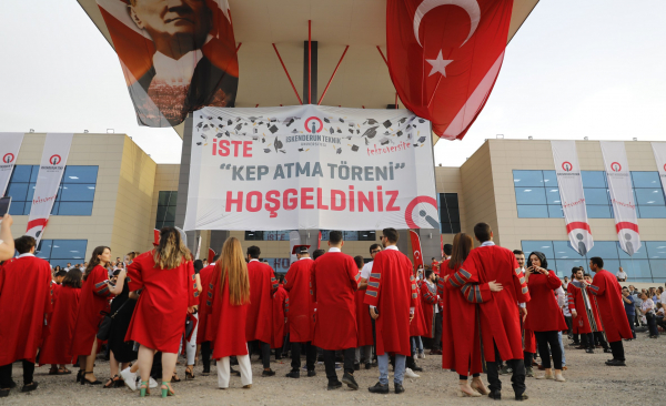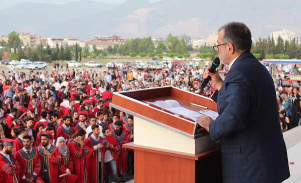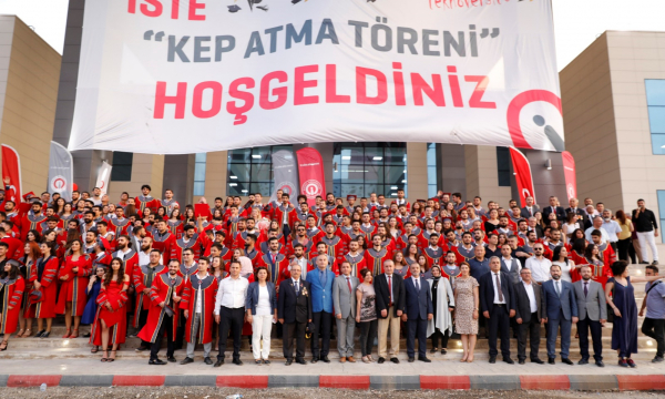 2018-2019 Eğitim-Öğretim Yılı sonunda İskenderun Teknik Üniversitesi’nden (İSTE) mezun olacak İSTE’lilerin bir araya geldiği İSTE Yeni Kütüphane önündeki meydanda heyecan doruktaydı. Saygı Duruşu’nda bulunulması, akabinde İstiklal Marşı okunulması ile başlanan Tören’de konuşan İSTE Rektörü Prof. Dr. Türkay Dereli, mezun adaylarına şu sözlerle seslendi: “İSTE’lilere selam olsun. Başladınız ve bitirdiniz. İSTE’diniz ve başardınız. Türkiye’nin teknolojiye adanmış Sanayi 4.0 markasına sahip ilk Teknoversite’sinden gururla mezuniyete doğru yürüyorsunuz. Yürüyün lütfen ve kendinize güvenin, çünkü biz bu özgüveni sizlere sağladık. Sunduğumuz Teknoversite vizyonu içerisinde İş Dünyasıyla Entegrasyon Programı’na (İDE) tabi oldunuz ve artık mezun olmanıza ramak kaldı. Biliyorum heyecanlısınız. Birazdan keplerinizi atacaksınız ama rahat olun. Biz sizleri gelecek hayatınıza, İDE ile hazırladık. Sizlerle beraber çalıştık. Entegratör oldunuz, teknolog oldunuz. Sizlerle beraber başardık. Sizinle beraber yüzlerce etkinlik yaptık. Yüzlerce proje geliştirdik. Sayenizde öğrenci memnuniyetinde Türkiye’de 5.’inci olduk, akademik üretkenlikte 2.’inci olduk. Sizlerle birlikte başardık. Evet, İSTE 4 yaşında. İSTE sizlerle büyüyor, İSTE yükseliyor, İSTE gelişiyor. Yeni tamamlanan binalarımız da tek tek devreye girmeye başlıyor. Kampüsümüz artık daha yaşanılabilir oldu. Tam 4 yıl önce İSTE’yi tercih eden öğrencilerimizi şimdi hayata uğurluyoruz. İSTE ailesinin bir ferdi olarak, sizden bizlerle bağlantınızı hiç kesmemenizi ve Üniversitemiz mezun bilgi sistemine üye olmanızı istiyoruz. İSTE’nin, İskenderun’un ve Hatay’ın kıymetini bilin. Bu sene kep atma törenimiz mübarek Kadir Gecesi’ne denk geldi. Hepimiz çok şanslıyız. Bunun kadrini ve kıymetini bilelim. Hayatımızda unutamayacağınız bir anı olarak kalacak. Hepinize hayırlı kandiller diliyorum ve yaklaşan Ramazan Bayramınızı tebrik ediyorum. Buradaki herkesi Kızılay’ın desteği ile ikram edilecek iftar yemeğimize davet ediyorum. Yolunuz bahtınız açık olsun”.
