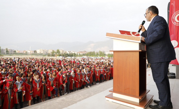 Ardından, İSTE Rektörü Prof. Dr. Türkay Dereli tarafından kürsüye davet edilen İskenderun Belediye Başkanı Fatih Tosyalı, yeni gelecek öğrencilere daha iyi hizmet verebilmek için belediye olarak ellerinden geleni yapacaklarını belirtti. Mezun adayları ve velilerle aynı heyecanı paylaşan Fatih Tosyalı tüm misafirlerin Kandilini ve Ramazan Bayramı’nı kutladı. Konuşmaların son bulmasıyla; velileri ve hocaları ile birlikte anı fotoğrafı çektiren İSTE’li mezun adayları hep beraber keplerini fırlattılar. Fotoğraf çekimlerinin ardından, tüm davetlilere Yeni Kütüphane binasında hazırlanan iftar yemeği ikramı yapıldı.