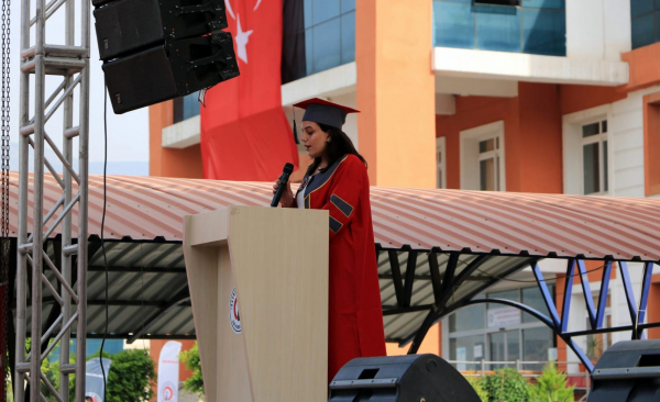 Mezun adayı öğrenciler sırasıyla sahneye gelerek hocalarından başarı belgelerini aldılar. Belgelerini alan öğrenciler hep birlikte kep atmak için yerlerini aldılar. Taze mezunların yeni hayatlarına adım attıkları kep atma anları ve ailelerinin gururlu bakışları görülmeye değerdi.