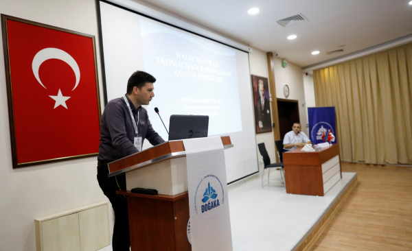 Prof. Dr. Umur Korkut Sevim başkanlığında gerçekleştirilen Hatay Özel Oturumu’nda Hatay’ın deprem riskinin incelenmesi konulu sunumu ile iste Mühendislik ve Doğa Bilimleri Fakültesi Öğretim Üyesi Prof. Dr. Semir Över, Hatay’ın yolcu taşımacılığı ile ilgili sorunları ve çözüm önerilerini Hatay Büyükşehir Belediyesi Ulaşım Dairesi Başkanlığı’ndan Muhammed İkbal Polat, güncel koruma yaklaşımları kapsamında tarihi kent dokusunun incelenmesi üzerine HMKÜ Mimarlık Fakültesi Öğretim Üyesi Doç. Dr. Mert Nezih Rifaioğlu ve oturumun son sunumu olarak İskenderun Körfezi konusunda İSTE Deniz Bilimleri ve Teknolojisi Fakültesi Öğretim Üyesi Prof. Dr. Ayşe Bahar Yılmaz, bilgilerini dinleyenlerle paylaştı. Açılış konuşmalarının ardından, desteklerinden ve katılımlarından dolayı İTSO Başkanı Levent Hakkı Yılmaz, DOĞAKA Genel Sekreteri Onur Yılmaza ve konuşmacılara plaket takdim edildi ve sunumlara geçildi.