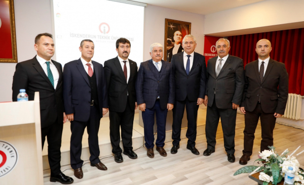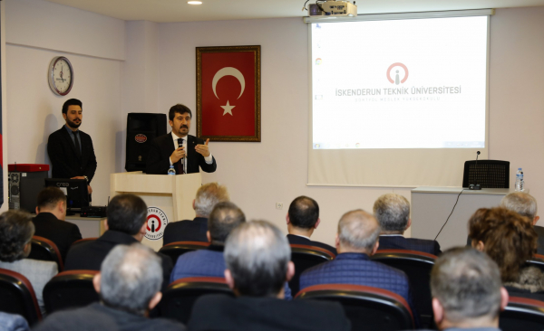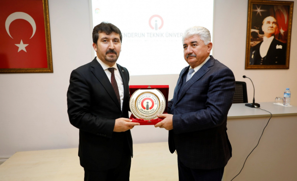 Öğrencilerin sorularının cevaplanmasının ardından, sunumlarından dolayı Prof. Dr. Musa Kazım Arıcan’a teşekkür eden İSTE Rektör Yardımcısı Prof. Dr. Selçuk Mıstıkoğlu, Hatay Milletvekili Hacı Bayram Türkoğlu ile birlikte günün anısına Prof. Dr. Musa Kazım Arıcan’a plaket takdiminde bulundu.