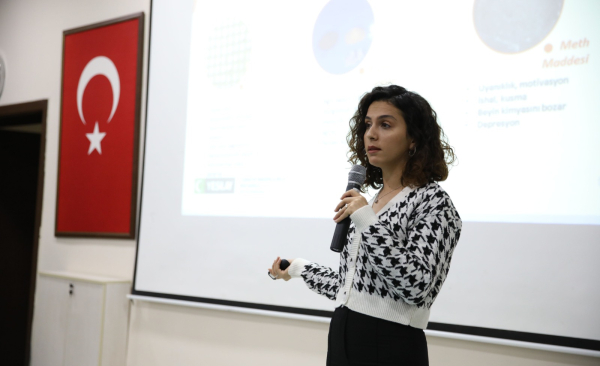 Yeşilay Türkiye Bağımlılıkla Mücadele Eğitim Programı kapsamında bir sunum yapan Psikolojik Danışman Kınacı ve Psikolojik Danışman Ateş madde bağımlılığı ne olduğu, bağımlılık yapıcı maddelerin neler olduğu, bağımlılığın olumsuz etkileri, madde kullanımı belirtileri, bağımlılığın nasıl başladığı ve ilerlediği, kullanıcıların nelerle sınandığı, bağımlılığın nasıl tedavi edildiği ve madde kullanımının getirdiği yasal sorumluluklarının neler olduğu konularına değindiler. Merak etmenin madde bağımlılığının ilk adımı olduğunu vurgulayan uzmanlar, bilgilenmenin kullanımının önüne geçmede önem arz ettiğini belirtti.