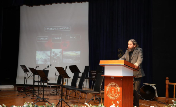 Programda ‘Teknoloji, Strateji ve İnancın Zaferi’ başlıklı konferans veren İSTE öğretim elemanı Dr. Yahya Yılmaz "Türk yurdu için kanlarını döken, canlarını veren, bu toprakları vatan yapan başta Gazi Mustafa Kemal Atatürk olmak üzere bütün şehit ve gazilerimizi minnet, şükran ve saygıyla anıyoruz” diyerek başladığı konuşmasında “Çanakkale Zaferini anlamak, hafızamızı tazelemek ve geçmişin tecrübesi üzerine, geleceğimize yön vermek, vatan uğruna ödenen ağır bedellerin farkına varabilmek için” önemli olduğunu vurguladı. Tarihin o güne kadar kaydetmediği, bir teknoloji ve savaş biçiminin, ilk kez Çanakkale’de görüldüğünü ifade eden Dr. Yılmaz, “Savaş teknolojisi ve yöntemi açısından Çanakkale, yeni bir dönüm noktasıdır. Çanakkale Savaşı’nın yeniden bir millet olabilmemizin temellerini attığını; millete verdiği özgüven ile I. Dünya Savaşı’nın ağır yenilgisinden sonra MilliMücadeleyi verebilmek için umut olmuştur” dedi.
