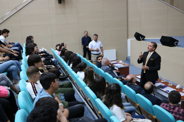 Dr. Öğretim Üyesi Mete Bakır, davetleri dolayısıyla İSTE Rektörü Prof. Dr. Tolga Depci’ye teşekkür ederek başladığı konuşmasında öncelikle kendinden söz etti. Türk Havacılık ve Uzay Sanayii Anonim Şirketi (TUSAŞ) hakkında bilgi veren Dr. Öğr. Üyesi Bakır, şirketin öğrenciler için sunmakta olduğu staj ve mezuniyet sonrası programlara yönelik bilgilendirmede bulundu. İskenderun Teknik Üniversitesi (İSTE) ile imzaladıkları ikili anlaşmaları hatırlatan Dr. Öğr. Üyesi Bakır öğrencileri kendileri ile çalışmaya davet etti. TUSAŞ bünyesinde danışmanlık veren İSTE Öğretim Üyelerinden Doç. Dr. Oğuzhan Akgöl ve Doç. Dr. Ersin Bahçeci’yi takdim eden Dr. Öğr. Üyesi Bakır’ın sunumuna Doç. Dr. Ersin Bahçeci devam etti. Doç. Dr. Bahçeci TUSAŞ’ta yürütmekte oldukları projelerle ilgili bilgi verdi. Konferans soru cevap ve çekilişle öğrencilere hediye verilmesi ile sona erdi.