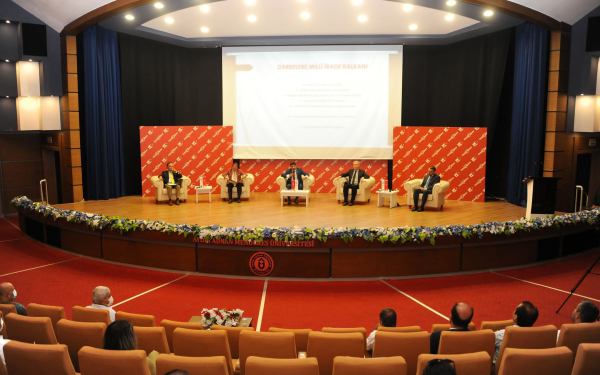 Aydın Adnan Menderes Üniversitesinin (ADÜ) düzenlediği 15 Temmuz Demokrasi ve Milli Birlik Günü özel programı, ADÜ Atatürk Kongre Merkezi Maiandros Salonu’nda gerçekleşti. Programa ADÜ Rektörü Prof. Dr. Osman Selçuk Aldemir, İSTE Rektörü Prof. Dr. Tolga Depci, ADÜ Rektör Yardımcıları Prof. Mehmet Aydın ve Prof. Dr. Ali Akyol, Genel Sekreter V. Doç. Dr. İbrahim Gökdaş, Söke İşletme Fakültesi Dekanı ve Adnan Menderes Araştırma Merkezi Müdürü Prof. Dr. Turan Akkoyun, Sosyal Bilimler Enstitü Müdürü Prof. Dr. Savaş Duman, senato üyeleri, fakülte dekanları, akademik ve idari personel katıldı.