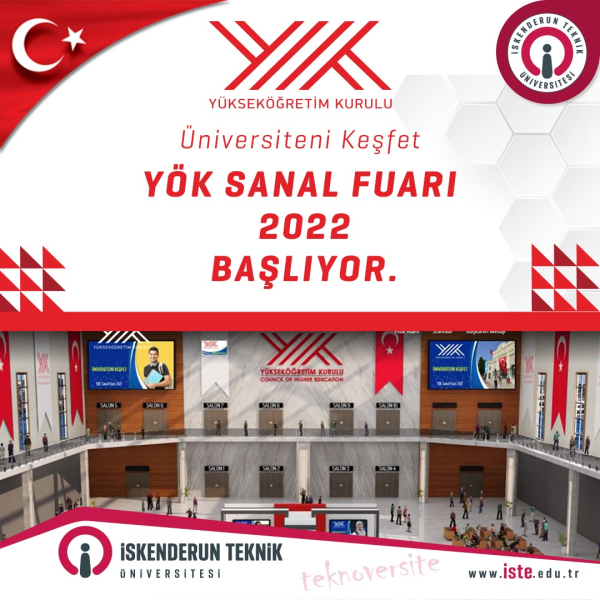 Yükseköğretim Kurulu’nun (YÖK) yükseköğretim kurumları ve programlarının dijital ortamda tanıtılmasına yönelik olarak üçüncü kez düzenlediği YÖK Sanal Fuarı, 1 Ağustos Pazartesi günü başlıyor. İskenderun Teknik Üniversitesi (İSTE), “Üniversiteni Keşfet YÖK Sanal Fuarı 2022” sanal fuarında yerini aldı. Çevrimiçi olarak gerçekleştirilecek fuarda gençler ve aileleri İSTE hakkında merak ettikleri sorulara doğrudan yanıt bulma imkânı bulacaklar. Adaylar ve aileleri 1- 3 Ağustos 2021 tarihleri arasında Türkiye saati ile 09.00- 17.00 saatleri arasında açık olacak sanal fuarda üniversitelerin yanı sıra şehirlerin tarihi, sosyal ve kültürel değerleri hakkında da bilgi sahibi olabilecekler.