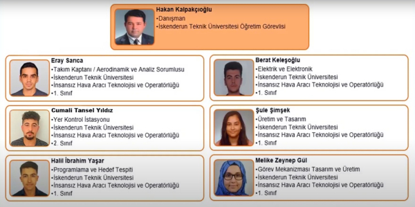 Yarışmada; Akademik Danışmanlığını İskenderun MYO Müdürü Öğr. Gör. Hakan Kalpakçıoğlu’nun, takım kaptanlığını Eray Sarıca’nın yaptığı Aybar İHA takımı 86 puan ile ve Danışmanlığını İskenderun MYO İnsansız Hava Aracı Teknolojisi ve Operatörlüğü Öğr. Gör. Osman Kümük’ün, takım kaptanlığını Muhammed Esen'in yaptığı Balamir İHa takımı 86,67 puan ile Afyonkarahisar'daki final yarışmasına katılmaya hak kazandı. Önceki yıllarda çeşitli kategorilerde dereceler alarak önemli başarılar elde eden İskenderun Teknik Üniversitesi (İSTE) İskenderun Meslek Yüksekokulu öğretim elemanları bu yıl da iddialı projeler ile TEKNOFEST’e katılmalarına projelerinin her aşamasında destek sunan İSTE Rektörü Prof. Dr. Tolga Depci’yeteşekkürlerini sundu.