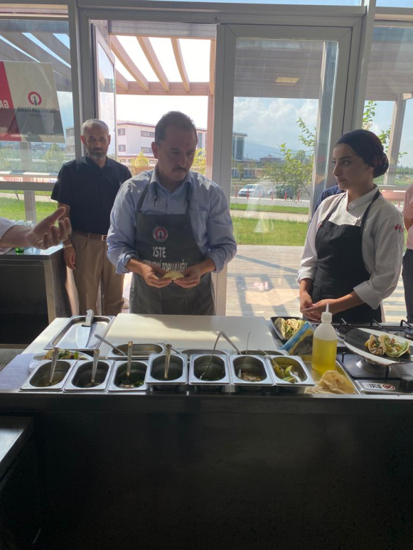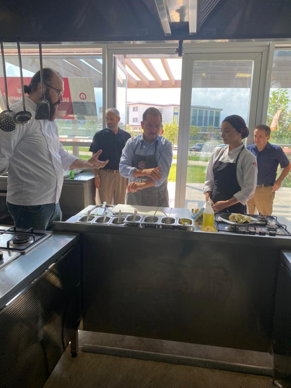 İSTE Rektörü Prof. Dr. Tolga Depci Gastronomi Mutfak Sanatları Mutfağında öğrencilerle beraber yemek yaptı.