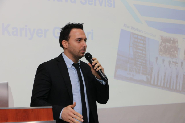 Son konuşmacı olarak söz alan Çelebi Hava Servisi Hatay Havalimanı İstasyon Müdürü Berkay Aktaş, şirket yapılanmalarını öğrencilere anlatarak işe alım süreçleri ile ilgili bilgi verdi. Aktaş, önceki yıl olduğu gibi bu yıl da 10 öğrenciye İME programı kapsamında istihdam sağlayacaklarından bahsetti.