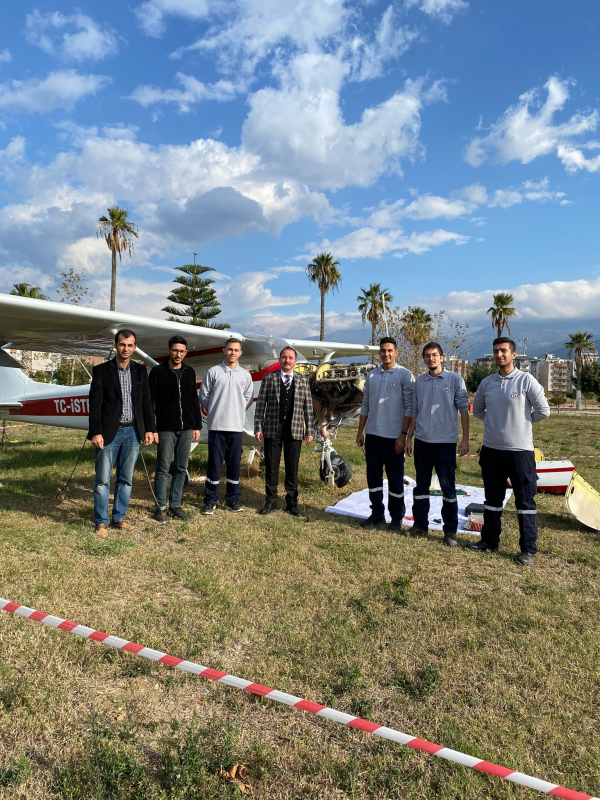 İskenderun Teknik Üniversitesi (İSTE) öğrencileri Cessna 172 tipi uçak üzerinde uygulamalı eğitimler yapıyor.