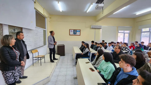 Deniz Bilimleri ve Teknolojisi Fakültesi Dekanı Prof. Dr. Cemal Turan, Su Ürünleri Yetiştiriciliği Bölüm Başkanı Prof. Dr. Şehriban Yalnız öğrencilere su ürünleri mühendisliği eğitimi, iş olanakları, çalışma koşulları, sektörün ve mesleğin geleceği konularında sunumlar yaparak bilgi ve deneyimlerini paylaştı.