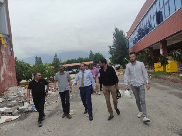 İskenderun Teknik Üniversitesi (İSTE) Rektörü Prof. Dr. Tolga Depci, idari birimler ve ek derslikler olarak kullanılacak binada devam eden çalışmaları yerinde inceledi.