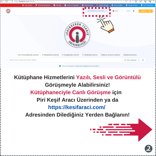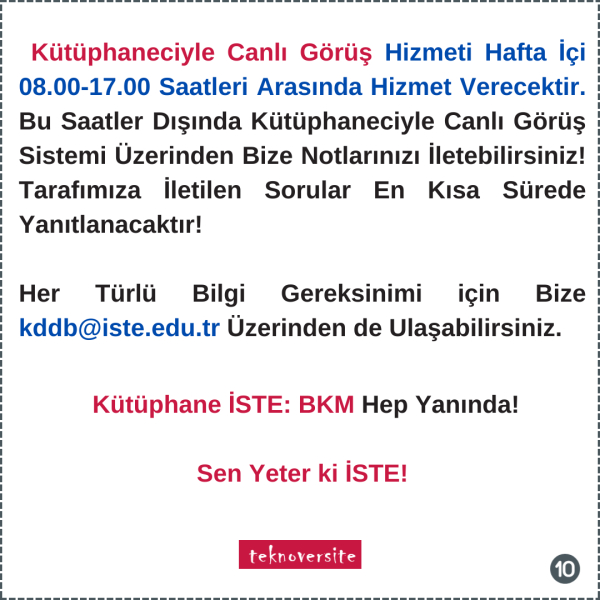 İskenderun Teknik Üniversitesi (İSTE) Kütüphane ve Dokümantasyon Daire Başkanlığı “Kütüphaneciyle Canlı Görüş” hizmetini uygulamaya başladı.