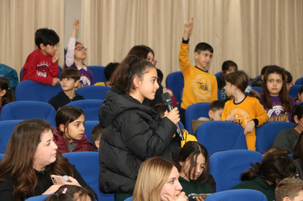 Davetli olarak katılan ilköğretim öğrencileri açılış öncesi coşkulu bir şekilde İstiklal Marşımızı okuyarak, daha sonrasında Prof. Dr. Ali Volkan Erdemir’ i meraklı ve heyecanlı bir şekilde dinleyerek program sonunda soru yağmuruna tuttular.