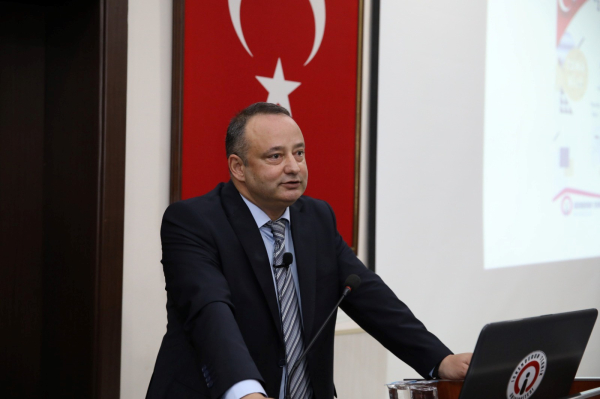 Program sonunda İSTE Rektörü Prof. Dr. Tolga Depci, günün anısına Prof. Dr. Ali Volkan Erdemir’ e hediye takdim etti.