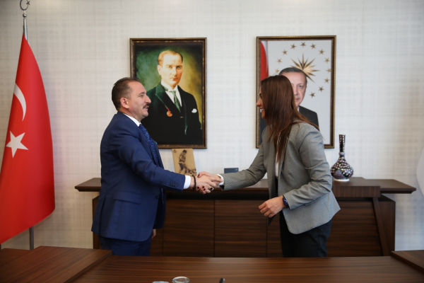 İSTE Rektörlük Makamında protokole imza atan İSTE Rektörü Prof. Dr. Tolga Depci ve TOBB Hatay Kadın Girişimciler Kurulu İl Başkanı Yeşim Ugutmen iş birliğinin her iki kurum ve tüm yararlanıcıları için hayırlı olsun temennisinde bulundu.