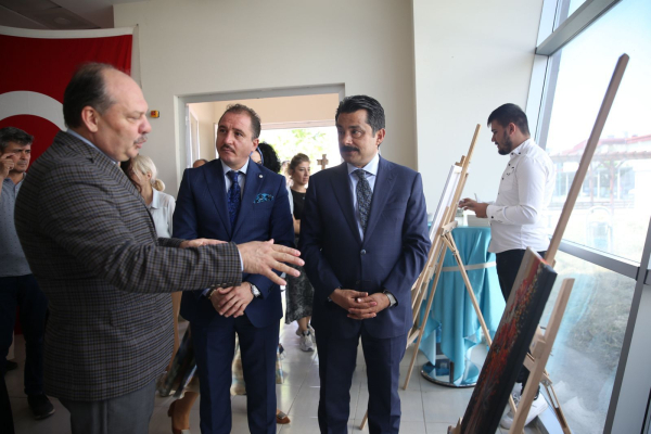 20 öğrencinin yağlı boya tekniğiyle yaptığı 30 resmin yer aldığı sergiyi gezip eserleri inceleyen Kaymakam Murat Sefa Demiryürek, Rektör Depci ve Gençlik ve Spor Müdürü Gündel öğrencileri tebrik ederek çalışmalarında başarılar diledi. Öğrencilerin müzik dinletisinin eşlik ettiği sergi açılışı kokteyl ve hatıra fotoğrafı çekimi ile sona erdi.